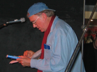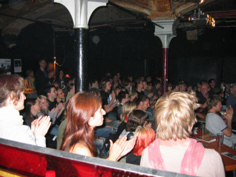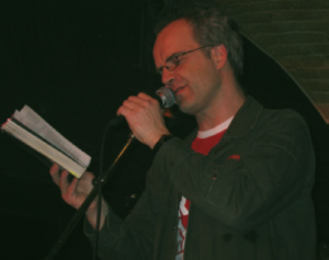 1.12.2005 Gestern in der Räucherkammer: Gestern nur Leute mit M auf der Bühne, ist mir vorhin bei der Nachlese im Radio aufgefallen: Meta, Michael, Marcus, Mary und vor dem Slam unser großartiger Gast Mirco Buchwitz; moderiert hatte Mendrik... Meta, mit Nachnamen Salat, versuchte das Publikum mit dem "Nektar unendlicher Langeweile" dazu zu bringen selbst aktiv zu werden, die Bühne zu stürmen, mitzuslämmen - damit handelte sich Meta Salat allerdings den ersten Platz ein, den er jedoch sofort an den zweiten, nämlich den Kiedricher Marcus Eberhard abtrat. So wars. Wer nicht dabei war, hats verpasst. (be) 27.10.2005 Gestern in der Räucherkammer: