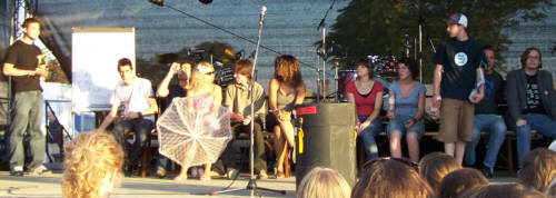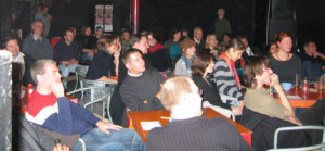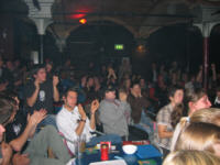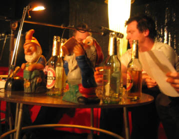 13.12.2007 Heute abend Vollversorgung! Heute abend kulinarische und sprachliche Vollversorgung im Wiesbadener Kulturpalast in der Saalgasse 36 mit "Leckereien für den kleinen Geldbeutel" und "verbaler Unterhaltung" mit Falk Fatal, Mark Mandrysch, Lillywhite Lillith und anderen, so kurz nach der Tagesschau. (be) 30.11.2007 Vorgestern in der Räucherkammer "Danke für diesen schönen Abend! Einfach großartig!!! Weiter so!" "Back to old school, gelungene Veranstaltung in kleinem angenehmen Kreis!" oder "War super, wir kommen gerne wieder! Macht weiter so!" um nur einige der Einträge ins (analoge) Gästebuch zu zitieren. Danke für alle Gästebucheinträge und Grüße nach Bleidenstadt! Und natürlich Grüße nach Berlin, woher unsere Gastautorin, die großartige Daniela Böhle, hergereist kam. Anfang nächstes Jahr wird ein Hörspiel von ihr im SWR gesendet, wir hoffen, wir kriegen es rechtzeitig mit, um dann hier Werbung für den Termin machen zu können. (be) 30.10.2007 Lesung mit Serdar Somuncu am 8.11. und noch zwei Tips für nächste Woche Das Aktive Museum Spiegelgasse lädt für den 8. November zu einer besonderen Kulturveranstaltung. In Kooperation mit dem Schlachthof, der VHS Wiesbaden, dem Literaturclub "Where the wild words are" und dem Amt fuer Soziale Arbeit gibt es am 8. November eine Lesung mit dem Kabarettisten Serdar Somuncu im Wiesbadener Schlachthof (Einlaß 19:00 Uhr, Eintritt 10,-). Serdar Somuncu wurde in den letzten Jahren mit seinen provokativen Auftritten bekannt, in deren Rahmen er aus "dem ungelesenen Bestseller" "Mein Kampf" von Adolf Hitler und der "Reichspalastrede" des Propagandisten Josef Goebbels zitierte. Zur Zeit tourt er mit "Bild Lesen", Serdar Somuncu liest und kommentiert die Bild-Zeitung. Noch zwei weitere Tips für nächste Woche, leider überschneidet sich der eine Termin mit der Lesung von Serdar Somuncu, Vollversorgung gibt es nämlich am selben Donnerstag, 8.11, im Wiesbadener Kulturpalast in der Saalgasse 36 mit "Leckereien für den kleinen Geldbeutel" und "verbaler Unterhaltung" mit Falk Fatal, Mark Mandrysch, Lillywhite Lillith und anderen so kurz nach der Tagesschau. Und am Freitag, 9.11. gibt es in Frankfurt wieder einen JAZZ POETRY SLAM, mit zehn Minuten Zeit für jeden Text inklusive Absprache mit Band "Cameleon". Ort: Cafe Gebäude 1, Fachhochschule Frankfurt, Nibelungenplatz (gegenüber Shelltankstelle), Einlass 20:30. Mehr Infos: www.slamffm.de (be) 27.10.2007 Tip: Low-Fi-Feminismus-Boheme im Klatsch am 1.11 Hab's grade auf 'nem Flyer gelesen: am 1.11., Beginn 20:00h, lesen und singen Sonja Eismann (ehem. Intro-Redakteurin) und Christine Rösinger (Lassi Singers, Britta) im Cafe Klatsch in der Marcobrunnerstr. 9 in Wiesbaden. Da gehe ich doch am Donnerstag hin, nachdem unsere Radiosendung vorher von 18-19 Uhr auf RadioRheinwelle gelaufen ist. (be) 25.10.2007 Gestern in der Räucherkammer Räucherkammer? Hessen ist seit dem 1.10. rauchfrei! Frank schlägt vor, wir nennen sie jetzt Pökelkammer. Also gestern gab es einen Poetry Slam mit sieben Poeten und einer Poetin, gewonnen hat der Graf aus Bonn mit einem Text über "Dschäääässsss" und das Erwachsenwerden. Zweiter wurde Karsten Lampe aus Wiesbaden, sein erster Text stammte aus seinem Zyklus "Lagerfeuer in der Hölle sind überbewertet". Stefan Schrahe war zwar nicht an der Salatbar, aber er hat ein Sandwich bestellt... Die Mutter von Andreas Höfler aus Mainz wünschte sich, er solle doch mal was seriöses machen und darum fand er sich "hier oben" auf der Slambühne wieder, und das hat ihm und dem Publikum wieder gut gefallen. Der Vortrag von junyq aus Bochum über Glaube und Liebe war mir zu sülzig, aber das Publikum und nicht die Moderatorin ist Jury und so kam er immerhin auf den 5. Platz. Maras aus Bordeaux wütete mit seinem Text, "geschrieben mit der Melancholie", gegen Geldgier und Klimawandel und auch Falk Fatal gedachte der "modrigen Käsesocken", wie auch der "Zivilisationsschrottromantik". Und dann war wieder Mary Grebner dabei, diesmal mit Thesen zu Beziehungskisten und Boxershorts, die Texte werden immer besser, die Performance schmissiger, da ist noch einiges zu erwarten! Mitschnitte gibts nächsten Donnerstag von 18-19 Uhr bei RadioRheinwelle zu hören. Und jetzt noch die Beweisfotos: ![]() ![]() ![]() ![]() 30.9.2007 "Gestern" in der Rk und im Waschsalon ![]() Über "Neulich im Waschsalon" gab es am 24.9.07 einen Bericht im Wiesbadener Kurier und im Wiesbadener Tagblatt, die drucken ja seit zwei Jahren vorallem im Feuilleton immer das selbe. Der Bericht ist nett geschrieben, aber stellenweise (wie üblich, wenn se man was schreiben...) fehlerhaft. Dennoch nachzulesen im Pressearchiv. (be) 13.9.2007 Heute Lesebühne Vollversorgung Heute abend gehen wir in die Haifischbar: Im Kulturpalast in der Saalgasse 36 gibt es wieder Vollversorgung mit "Leckereien für den kleinen Geldbeutel" ab 20h und "verbaler Unterhaltung" mit Falk Fatal und anderen ab 21h. Kommt ihr mit? (be) 28.8.2007 Sein Name ist Folk, Folk Lore 007 ![]() Unser Abgesandter zu den deutschsprachigen Poetry Slam-Meisterschaften Anfang Oktober 2007 in Berlin, wird wie im letzten Jahr der Wiesbadener Falk Fatal sein. Der Folklore-Slam war ja auch Qualifikationsslam: Falk hat zwar "nur" den fünften PLatz erzielt, aber die vier vor ihm haben sich bereits anderweitig qualifiziert. (be) 16.6.2007 Buchtip und Schreibgruppe Hier die am Donnerstag in der Radionsendung versprochenen Hinweise zum nachlesen: Vera hatte ein Buch empfohlen, nämlich eine Anthologie mit Kurzgeschichten über Musik, mit dem Titel "my favourite chords - augenblicke in liedern", Revonnah Verlag, Hannover 2007. Eine Homepage, u.a. mit Terminen der Lesungen zum Buch, die sehr kurzweilig sein sollen, gibt es auch: www.favouritechords.de Die Schreibwerkstatt an der FH Wiesbaden von der unser Radiogast Naomi erzählte, ist eine offene Schreibgruppe, die sich jeden ersten Freitag im Monat trifft, und zwar um 19:00 Uhr in der Fachhochschule Wi